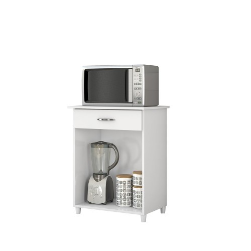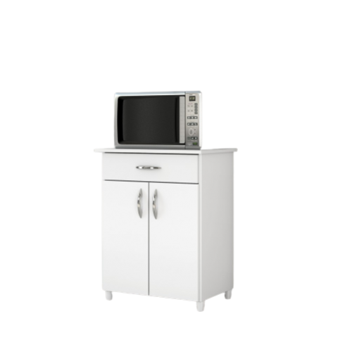 Possui estrutura produzida em MDP de 12 e 15 mm, com tampo, portas e gavetas em MDP de 15 mm. Acabamento UV disponível em Branco Brilho. As dobradiças são modelo caneca de pressão 26 mm e as corrediças são metálicas. O sistema de montagem é feito com parafusos e cavilhas. Os pés são em PVC e os puxadores em ABS. O sistema de embalagem é feito com tampo e fundo, o qual aumenta a proteção dos volumes no transporte e manuseio.