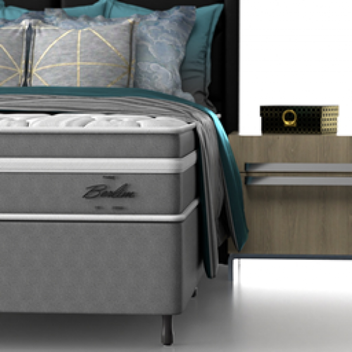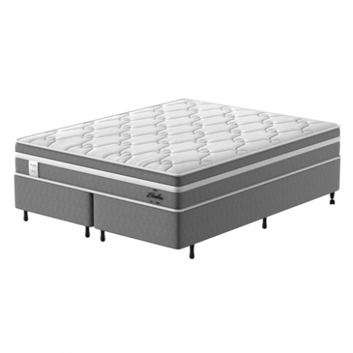 MATELASSÊ: Branco (T8); Tecido em malha 180g; Espuma D20; ESTOFAMENTO: Espuma D28; MOLEJO: Molas Ensacadas individualmente – Side Security D28; *Base em EPS; FAIXA LATERAL: Jacquard Cinza (BX); FAIXA PILLOW: Jacquard Cinza (BX); SUPORTE DE PESO: 130kg; Medidas 88x188x26