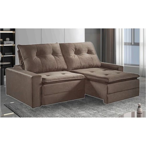 -Retrátil e Reclinável – Veludo -Largura: 2,00/2,20/2,40m -Largura Braço: 0,20m ou 0,25m -Altura: 1,10m -Profundidade Fechado: 1,20m -Profundidade Aberto: 1.80m -Espuma Assentos: D28 Soft + Manta Fibra Silicone -Altura Pillow: 0,10m -Espuma Encosto: 100% Fibra Silicone – Esconto: Almofadas COSTURADAS -Costuras: COSTURA DUPLA (Duas Agulhas) -2 MODULOS -Molas: Aço Espiral -Percintas ELÁSTICAS. -Pés: Madeira -Rodízios: SILICONE -Catraca: Blindada 10 ESTÁGIOS -Trilhos: CORREDIÇA EM TUBO Metálico -Cores: Grafite, Marrom, Azul