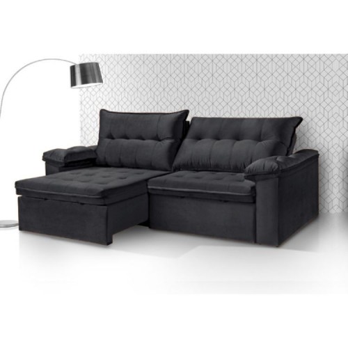 -Retrátil e Reclinável – VELUDO -Largura: 2,00/2,30/2,50m -Largura Braço: 0,20m ou 0,25m -Altura: 0,95m -Profundidade Fechado: 1,15m -Profundidade Aberto: 1,80m -Espuma Assentos: D23 -Altura Pillow: 0,16m -Encosto: 100% Fibras Siliconizadas – Esconto: Almofadas COSTURADAS -Costuras: RETA e COSTURA DUPLA. – 2 MODULOS -Molas: ENSACADAS -Percintas ELÁSTICAS -Pés Tipo: PLÁSTICO -Rodízios: SILICONE -Catraca: 10 ESTÁGIOS, BLINDADA E SILÊNCIOSA. -Trilhos: CORREDIÇA EM TUBO -Cores: Grafite, Marrom, Azul