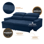 SOFA TRENTO AZUL 506 2,00M RETRATIL RECLINAVEL