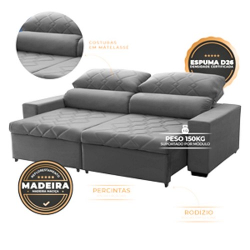 SOFA TRENTO GRAFITE 515 2,00M RETRATIL RECLINAVEL