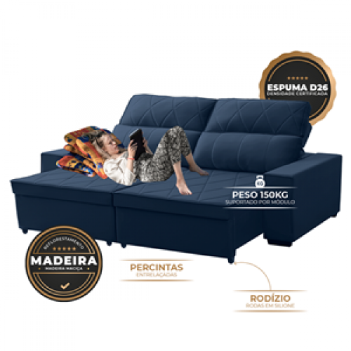 SOFA XANGAI AZUL 506 2,00M RETRATIL RECLINAVEL
